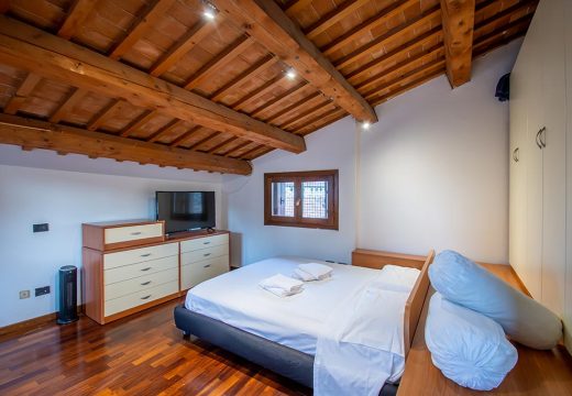 L’area notte comprende un bagno finestrato ed una spaziosa camera con soffitto in andamento.